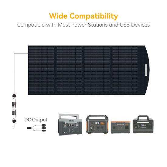 This solar panels comes with a DC5521 output cable and can directly connect to the included 4-in-1 interface cable (DC5521). It is compatible with 98% of solar generators/portable power stations on the market (including brands like Mag solar, Jackery, Ecoflow, Bluetti, Paxcess, Suaoki, Flashfish, etc.).