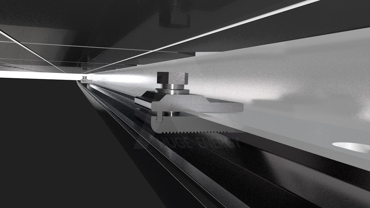 Drill-free, Point-fastening System: Gutters are secured to beams with specialized clamps at any point along the rail. This allows for highly efficient and safe installation with no need for drilling. |